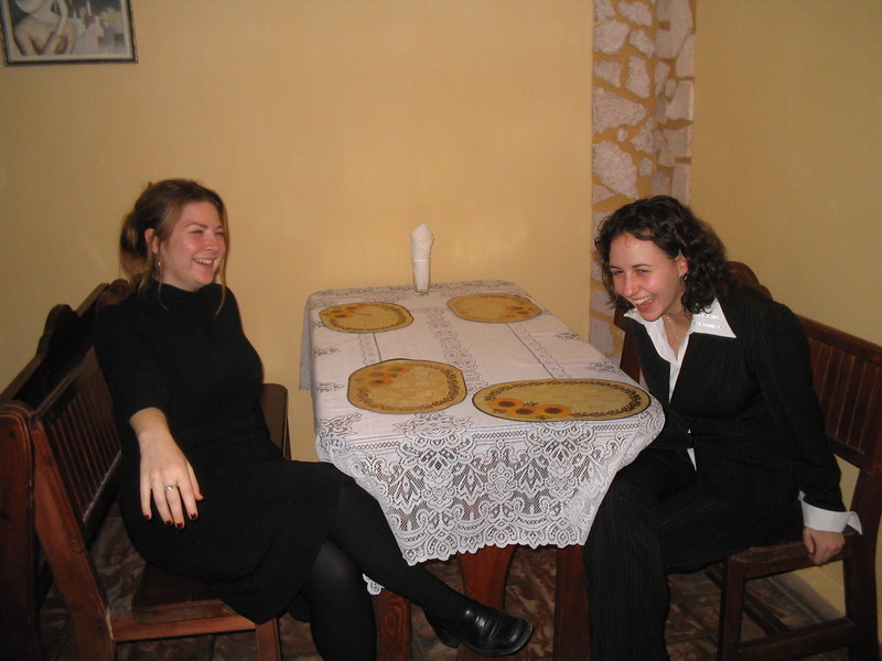 "Our community farewell was lightly attended but highly festive and intimate. It was a sharp contrast to Poland, where the hall would be so full that Miranda and I were prevented from inviting our beloved co-workers to what turned out to be a standing-room-only evening. This time, Lindsay made and presented the slideshow, which was conducive to the understanding of all as her boyfriend Vania had translated the narrative. In Poland, I translated the titles in my slideshow with a pocket dictionary, and I had the place roaring with laughter from beginning to end, not only because of the photos. Anyway, Lindsay did a really nice job on the slideshow. I must ask her to leave it on the computer for me…"