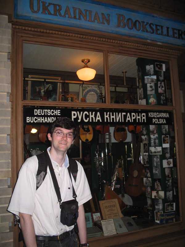 Me, in front of a replica Ukrainian Bookstore at the Canadian Museum