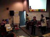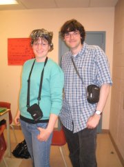 Kayla and Afton's sketch, with Kayla acting the part of Will Matheson and Afton acting as the recording of Mme. Igot. |